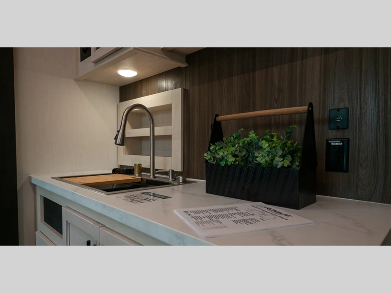 There is a 3,000 lb. rated ramp door on each model, along with DuraPoxy gas/oil resistant flooring, and 5,000 lbs. tie-downs to keep your toys secure on the way to the campground. You can enjoy your toy hauler for years to come thanks to the aluminum frame sidewalls and radius PVC walk-on roof, and the 102" wide body construction will make it easier than ever to load up dirt bikes, four-wheelers, or kayaks! Inside, you'll love the zebra shades in the living areas, the glass shower doors, the quick set garage bed system, and many more comforts!