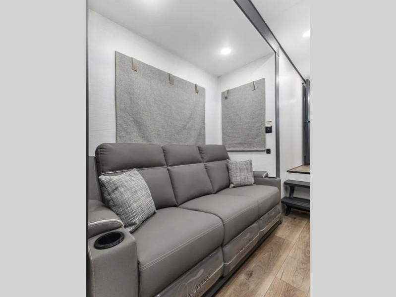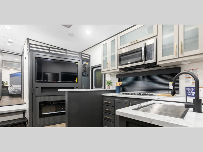 There is fiberglass flooring insulation that will withstand your many adventures plus a rear beaver tail frame for easy unloading and an external fuel cell with a pump. You will feel right at home with decorative glass cabinet doors and LED lights, and there is a tankless water heater to provide endless hot showers after trail riding. The Alumifoil insulated enclosed underbelly will help extend your camping season, and each model is back up camera ready if you want to make parking easier than ever.